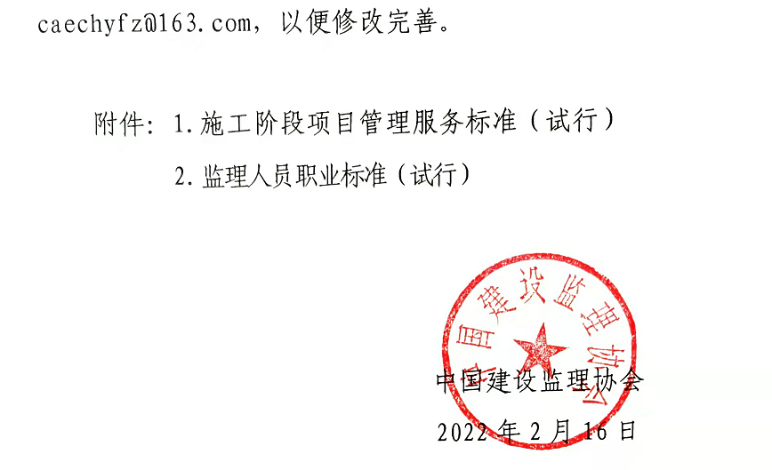 近日,中国建设监理协会官网印发试行《施工阶段项目管理服务标准》和《监理人员职业标准》的通知。