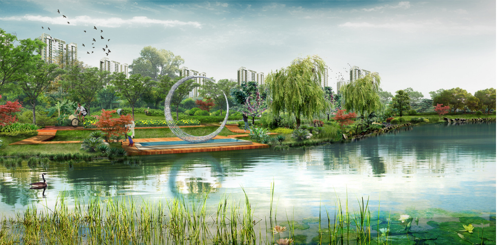 南湖公园区域属于都市型绿道,设置绿化隔离带,新城地区绿化隔离带的宽度不小于 3 米,旧城不小于 1.5 米,南湖公园融合了二级滨水绿道及多条交通绿道提高了周边居民的参与性。