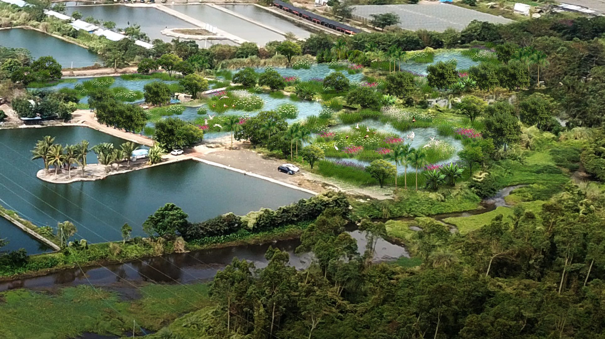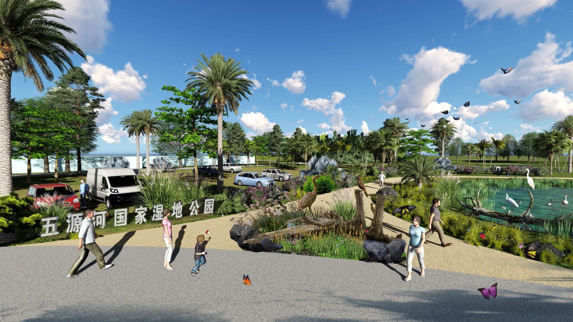 项目位于海南省海口市椰海大道北侧的上游河道生态修复区以及椰海大道南侧的湿地公园展示区和河源保育区。